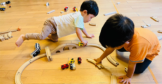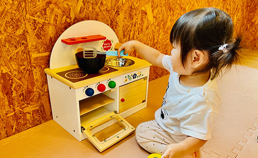 子どもの達の成長発達を促す運動遊びをはじめ、テントや大型ブロックを使ってのままごと遊び、パズル遊びや、電車や車など子どもたち一人ひとりが自由に興味を持ってじっくり遊ぶことができるよう環境を整えています。